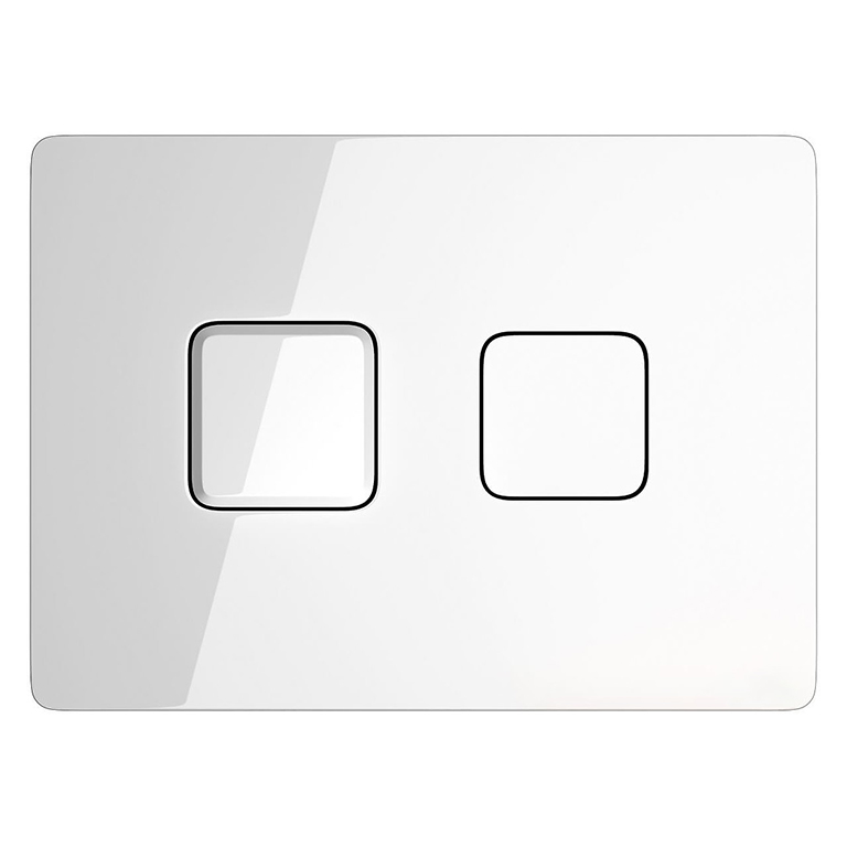 ACCENTO pneumatikusan aktiválható öblítőgomb fehér üvegfelülettel, négyzet alakú nyomógombokkal, fehér